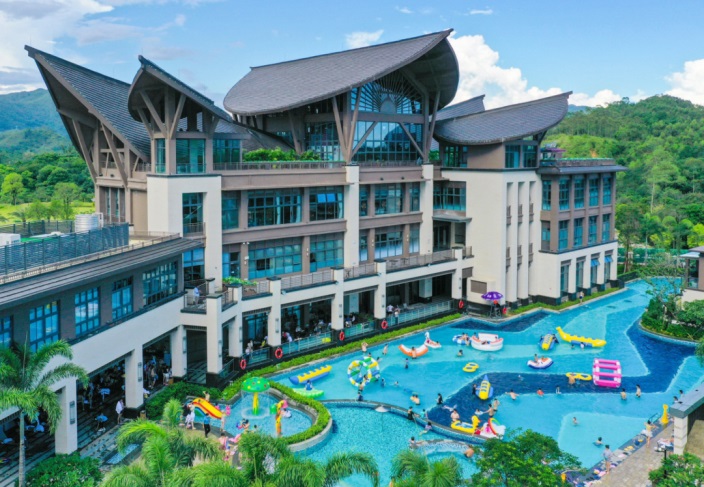 富通·十里泉城坐落于中国优秀旅游城市、粤西生态名城阳春市,紧邻234国道,与肇阳高速阳春南出入口接驳,汕湛/肇阳/沈海/中阳四高速环绕,深茂高铁、广湛高铁(阳江北站/阳春东站建设中)双高铁便捷到达,约60分钟快速到达广州。项目总体规划占地约3000亩,依托有“美人汤”之称的偏硅酸型天然高温温泉资源,与漠阳江畔秀丽的山水景色,规划有温泉大酒店、风情商业街区、亲子农庄、研学基地、冒险岛乐园、滨江漫步长廊等全方位配套设施。一期占地面积约140亩,将江山资源和温泉亲水作为主题元素,打造超长网红夏威夷泳道、臻温泉泡池、渔舟唱晚主题餐厅、狮子星儿童乐园、婚庆广场、天香大草坪等。