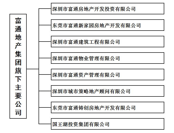 深圳市富通资产管理有限公司:成立于2005年11月,是一家致力于商业物业运营、涉及多种类型不动产经营管理的企业。通过多年的努力已经成为行业内不动产经营和管理的重要参与者。其主营业务集中于住宅开发以外的其他物业类型包括商铺、商场、写字楼、工业厂房、学校、幼儿园、会所等的经营和管理,经营管理各种不动产资产面积达10万㎡,管理不动产总资产逾60亿元。主要投资控股深圳市海智科技园有限公司、深圳市涌鑫实业有限公司,参股深圳市数字硅谷投资发展有限公司。